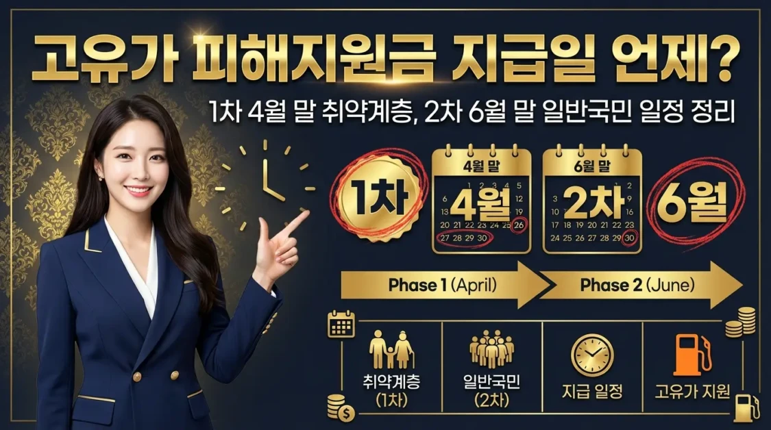 그래서 제가 직접 찾아봤어요. 고유가 피해지원금 지급일은 정부가 직접 “1차 4월 말, 2차 6월 말“로 밝혔고, 전년도 민생회복 소비쿠폰 방식을 그대로 적용해 국회 통과 후 1차는 약 17일, 2차는 약 80일 기준으로 지급할 계획이에요. [web:26][web:24]